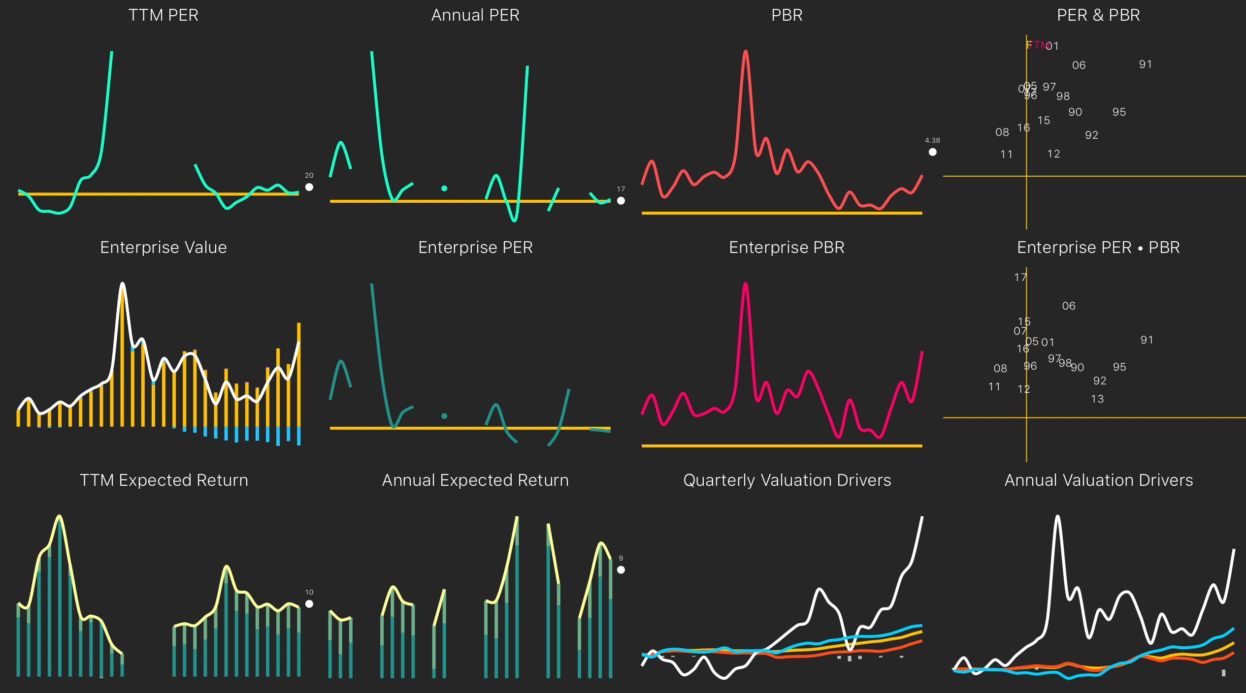 Enterprise PER & PBR - Using the same framework as the PER and PBR chart, up to 28 years of Enterprise PER and PBR ratios are plotted to illustrate the relationship between growth and risk which together are indicators of expected stock return